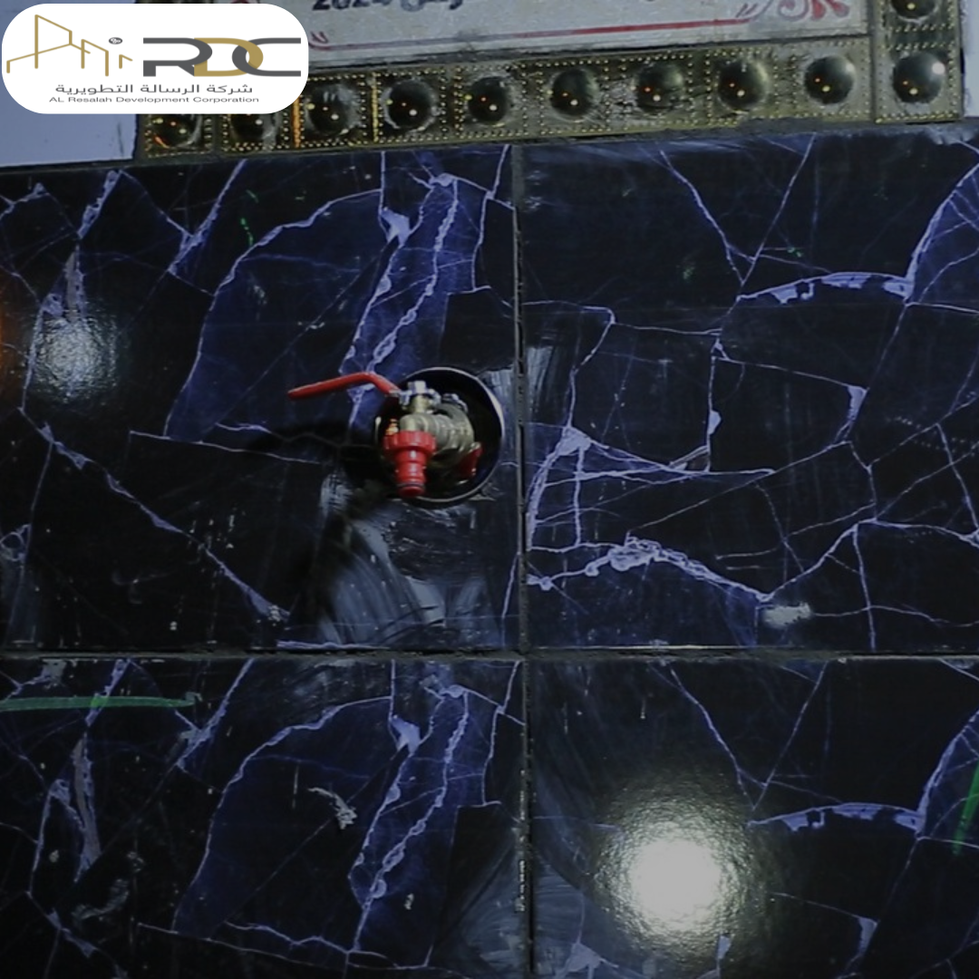 لوحة رخامية على البئر تحمل بيانات المنفذ.